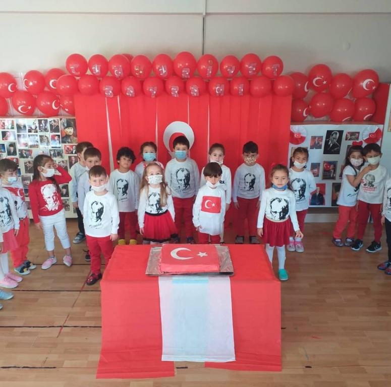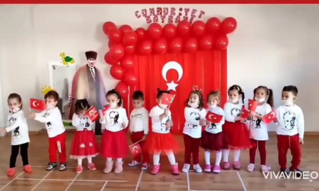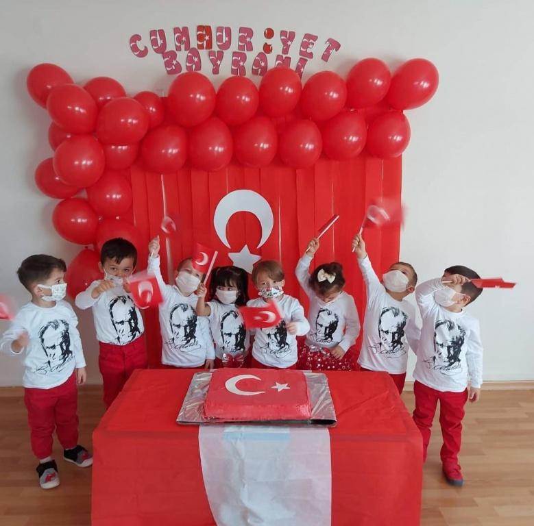 75.Yıl Anaokulu olarak 29 Ekim Cumhuriyet Bayramımızın 98. Yılını coşku ve gururla kutladık. Okul Müdürümüz Orhan CEBECİ "29 Ekimden bir gün önce Mustafa Kemal Atatürk arkadaşları ve Kurmaylarına "Efendiler yarın Cumhuriyeti ilan edeceğiz" açıklamasında bulunmuştur. 29 Ekim 1923 sabahında ise Türkiye Büyük Millet Meclisi Cumhuriyeti ilan etmiştir.Gazi Mustafa Kemal Cumhuriyeti Türk Gençliğine emanet etmiştir. Bu özel günde Mustafa Kemal Atatürk ve İstiklal Kahramanlarımızı, vatanı için gözünü kırpmadan mücadele etmiş tüm şehit ve gazilerimizi rahmet ve minnetle anıyoruz" dedi.